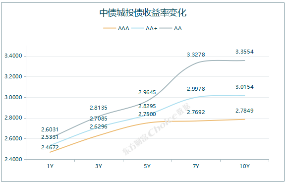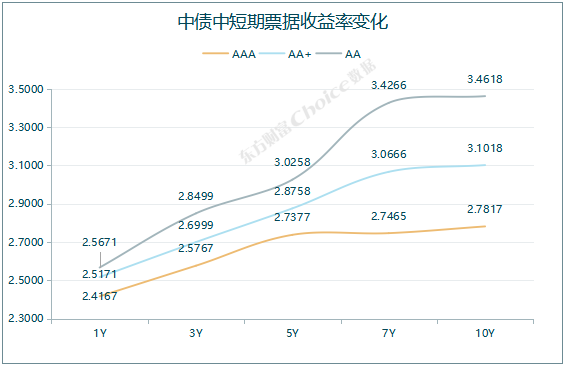 中债5年中短期票据(AAA)收益率报2.7377%,下行0.01BP;中债5年城投债(AAA)收益率报2.7500%,与前一交易日持平。